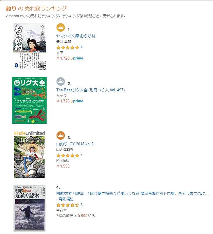 昨日紹介した本がAmazonの釣りカテゴリ堂々の4位にランクイン。中古本の在庫も紹介前は14点あったのが、5点に。9点も売れています。